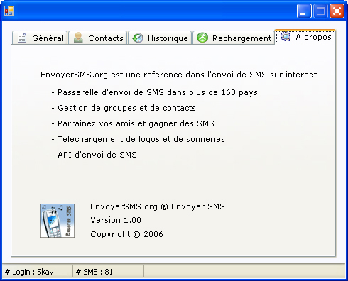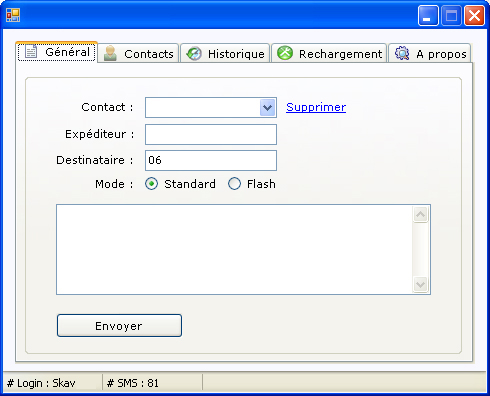 Gratuit, ce logiciel en français permet d'envoyer des SMS directement depuis un PC connecté à Internet, sans avoir à aller sur le site.